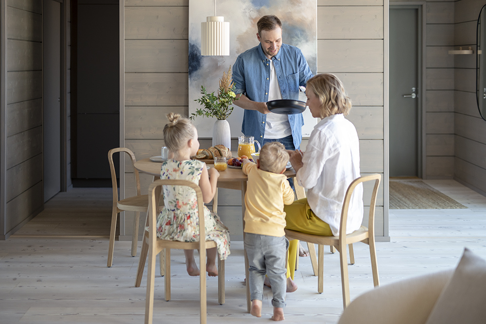 Juuso mäkilähde perheineen koeasui honkarakenteen taloa tuusulan asuntomessualueella. Liikevaihto on kasvanut vuosi vuodelta. Modernissa hirsirakennuksessa yllätti sen avara kodikkuus. Ei tuohon reissuun ikinä totu. Perheen unelma on askeleen lähempänä toteutumistaan.
